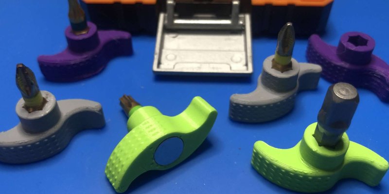 Un petit porte embout, format Hexagonal 6,35 mm, de poche à toujours avoir sur soit ou dans la boite à outils de votre imprimante 3D.